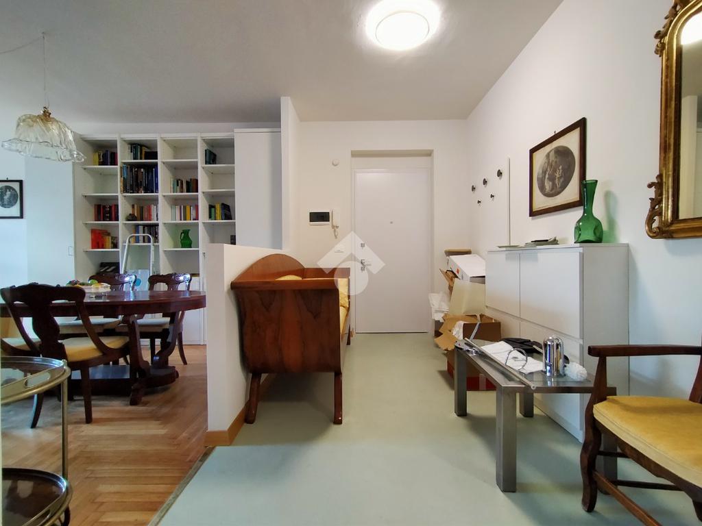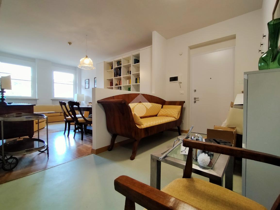 Alloggio ristrutturato ed arredato in stile classico, al sesto piano di Palazzo Challand, servito da ascensore nuovo e senza barriere architettoniche.