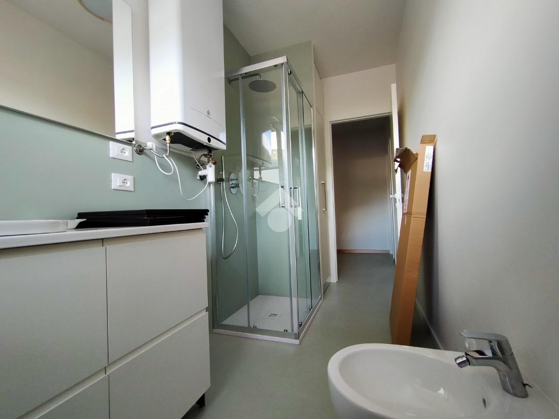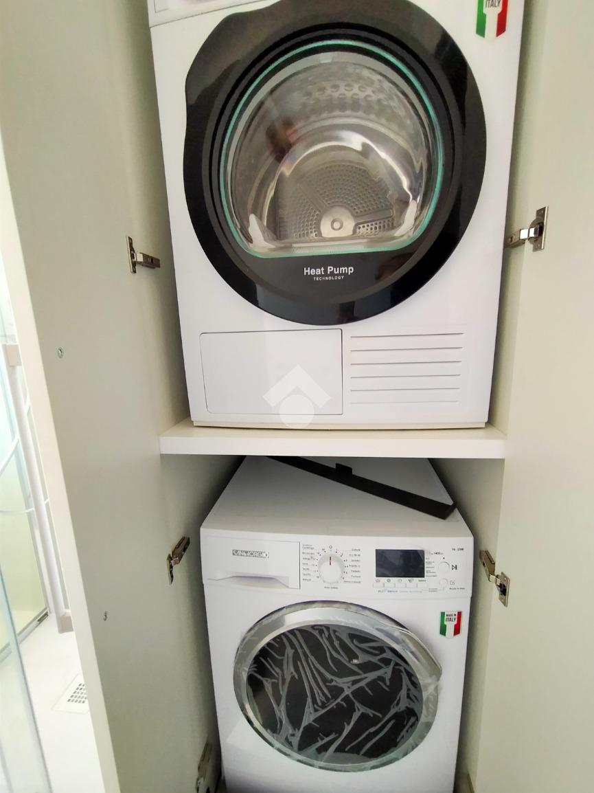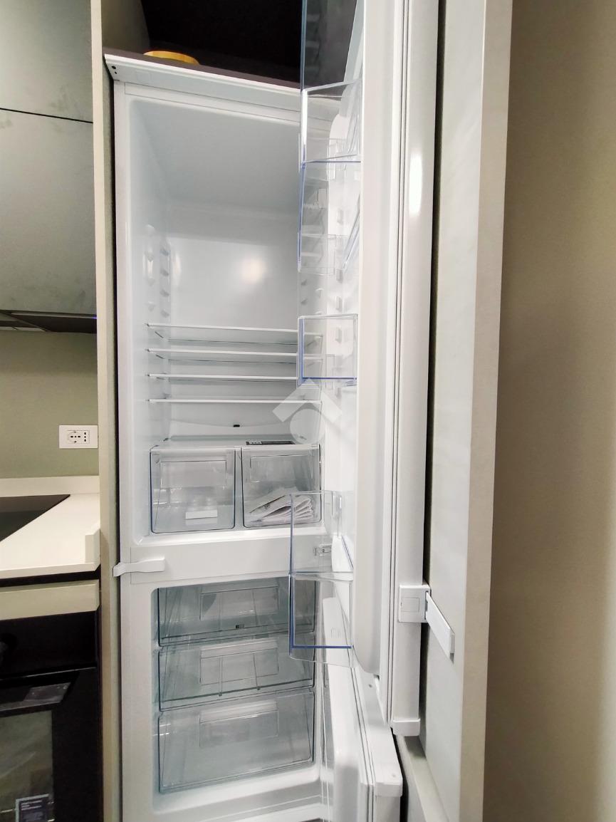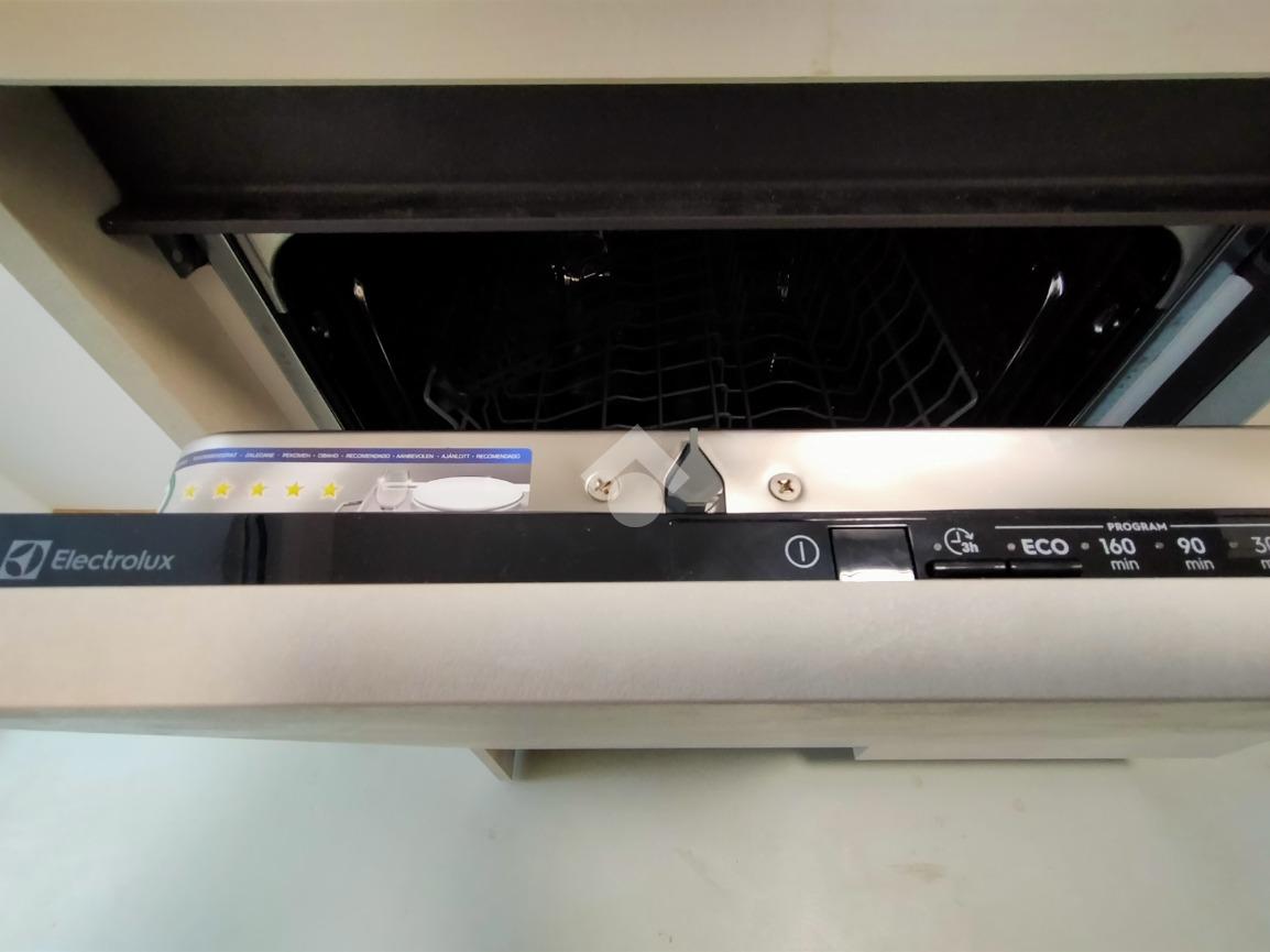 L'alloggio è completo di arredi ed elettrodomestici, ed è composto da ingresso, zona giorno con cucina e soggiorno, due camere da letto e doppi servizi. Dispone inoltre di un balcone con affaccio a sud ed è completo di cantina.