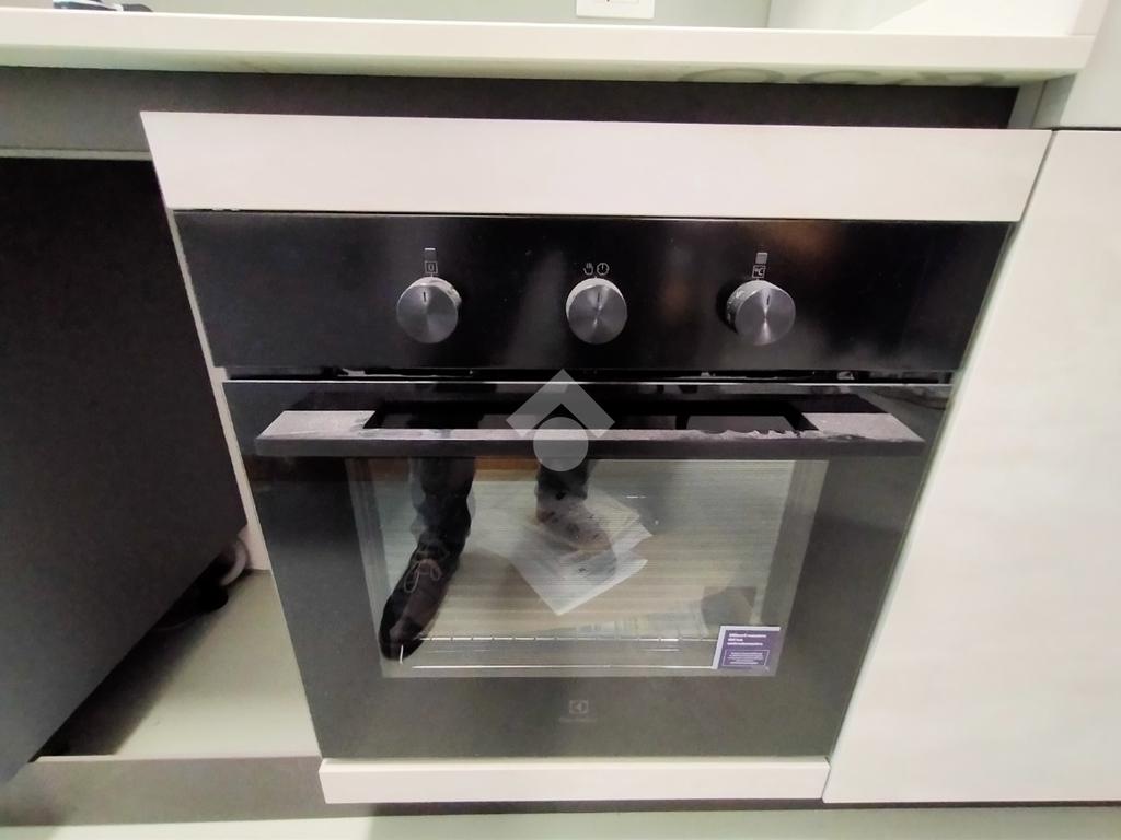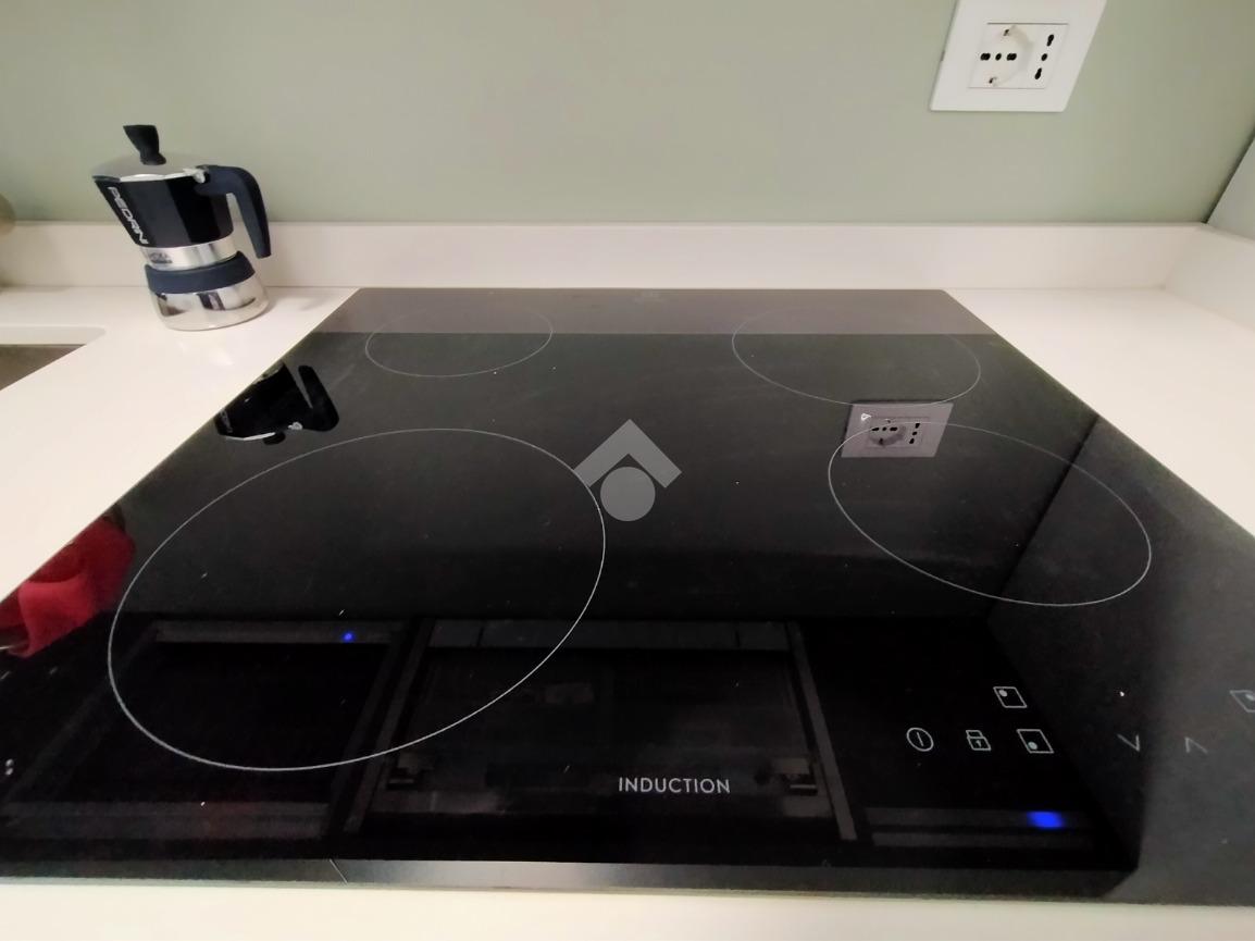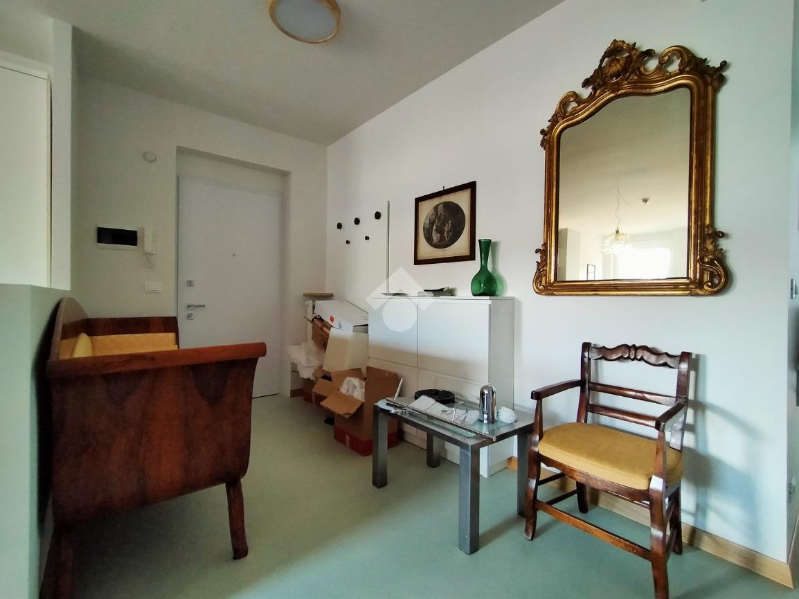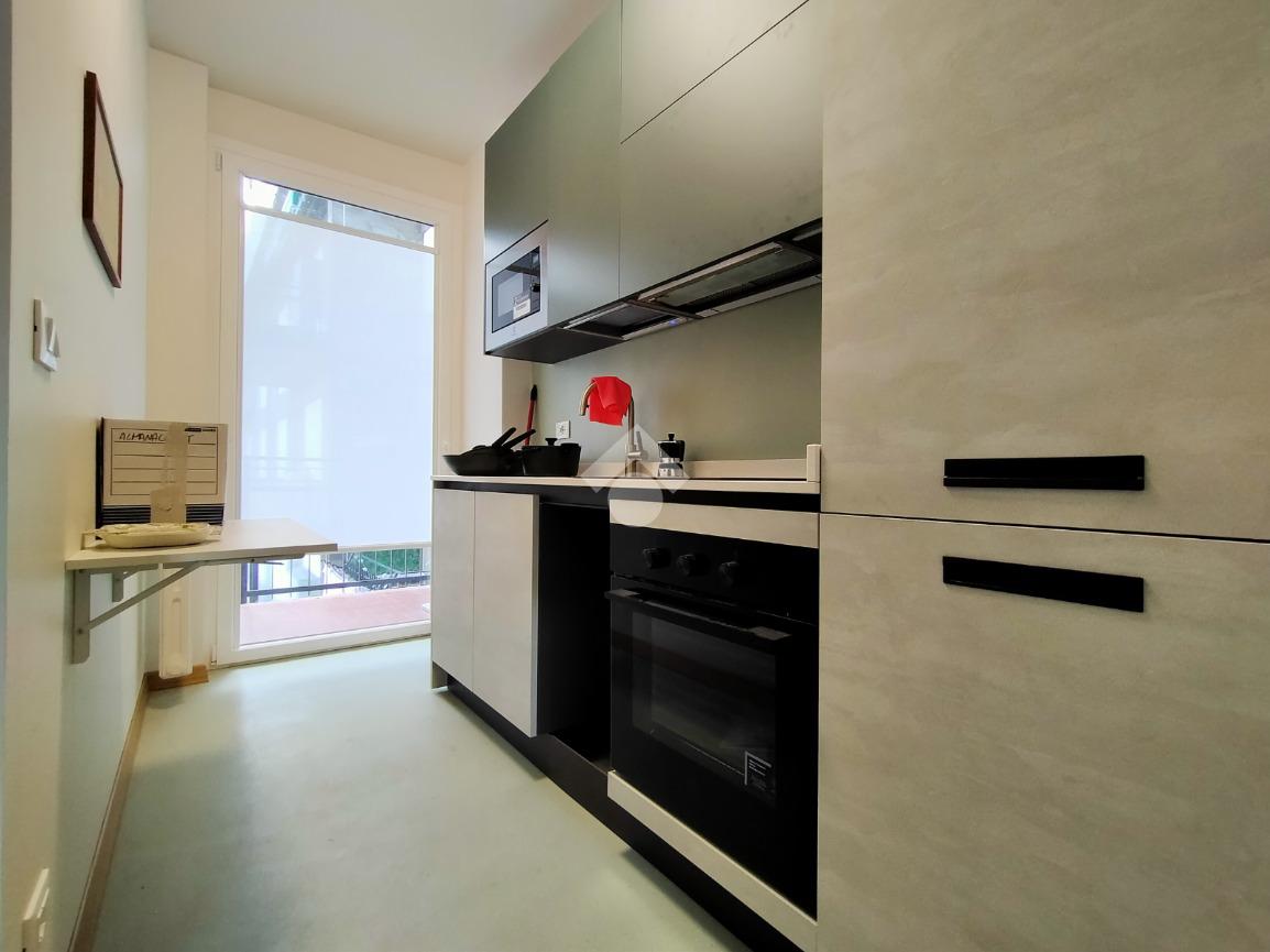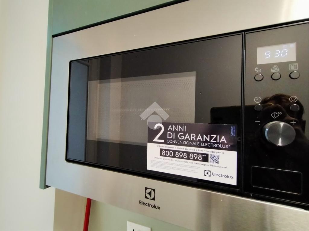 L'alloggio è completo di arredi ed elettrodomestici, ed è composto da ingresso, zona giorno con cucina e soggiorno, due camere da letto e doppi servizi. Dispone inoltre di un balcone con affaccio a sud ed è completo di cantina.