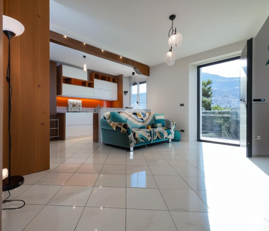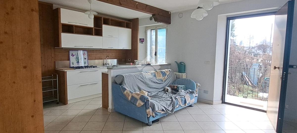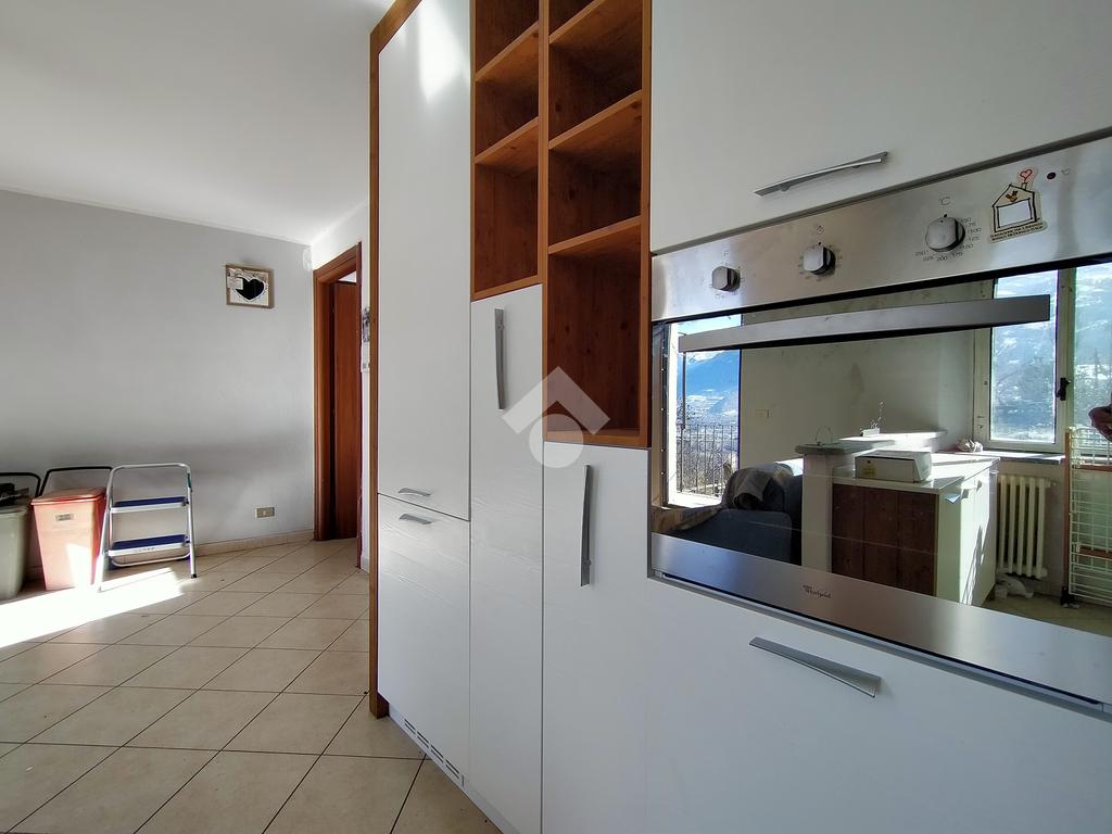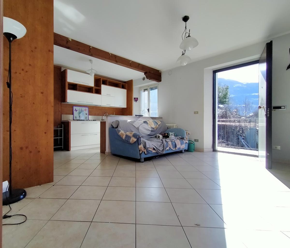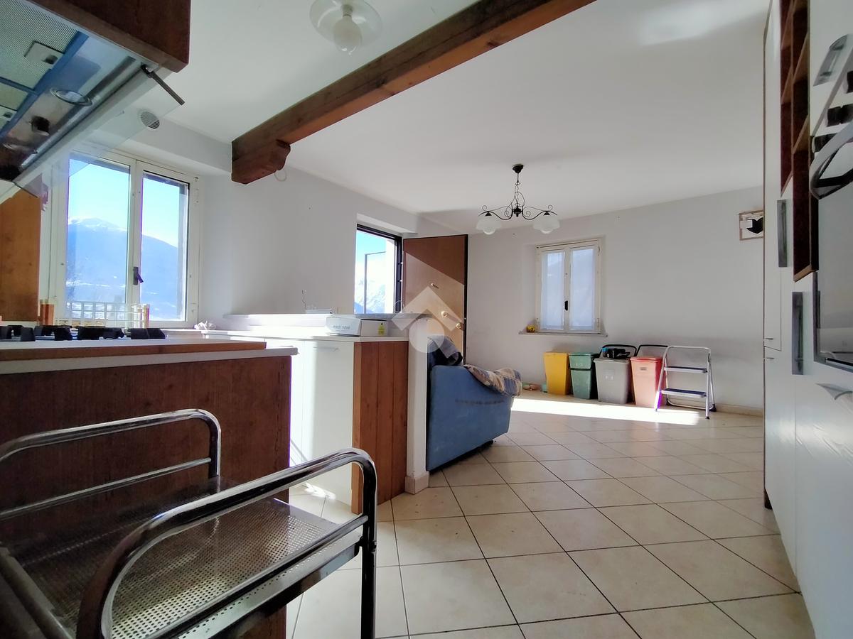 L'immobile è composto da un ingresso su zona giorno con angolo cottura due camere da letto, un bagno con doccia ed un ripostiglio. All'esterno, un terrazzino e un balcone permettono di godere di una meravigliosa vista sulla vallata e sulle montagne circostanti.